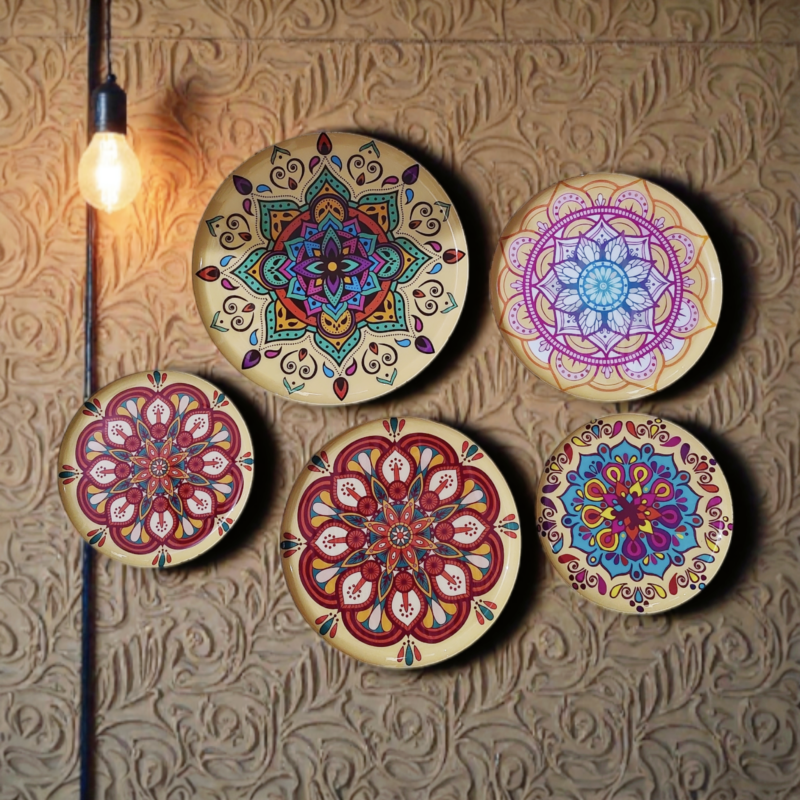 Tan Turtle Handcrafted Metal Wall Plates Set of 5 | Multicolor Mandala Wall Décor for Living Room, Bedroom & Office