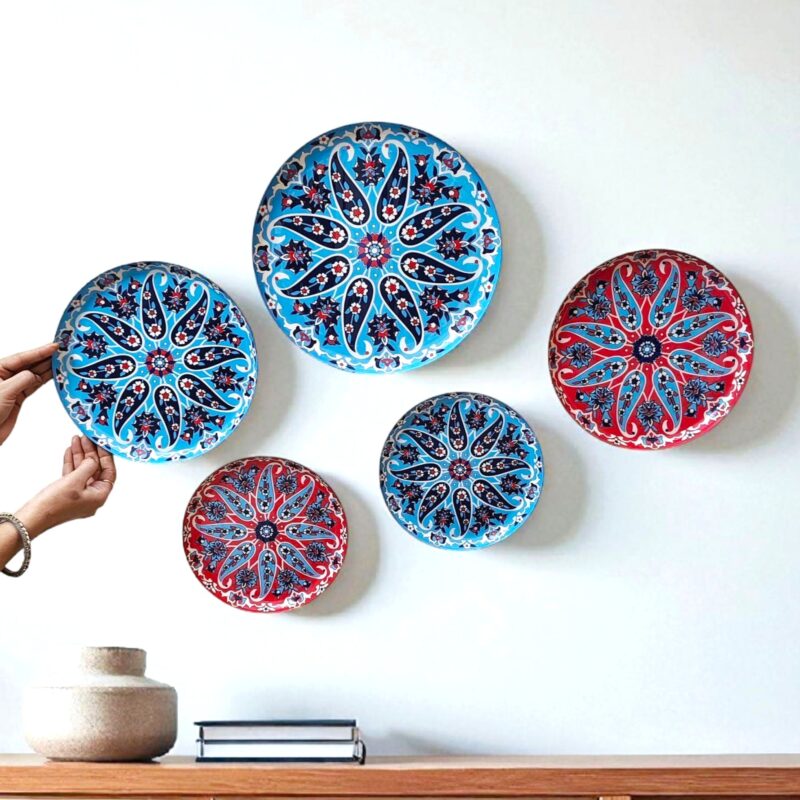 Tan Turtle Decorative Metal Wall Plates for Home or Wall Decoration (Turkish Floral, Red & Blue, Medium)