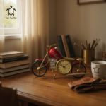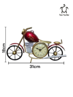 Crafted from sturdy metal with an antique finish, it showcases intricate detailing inspired by the legendary motorcycle. The built-in analog clock features a Roman numeral dial and a nostalgic flair, making it both a statement décor piece and a functional accessory.