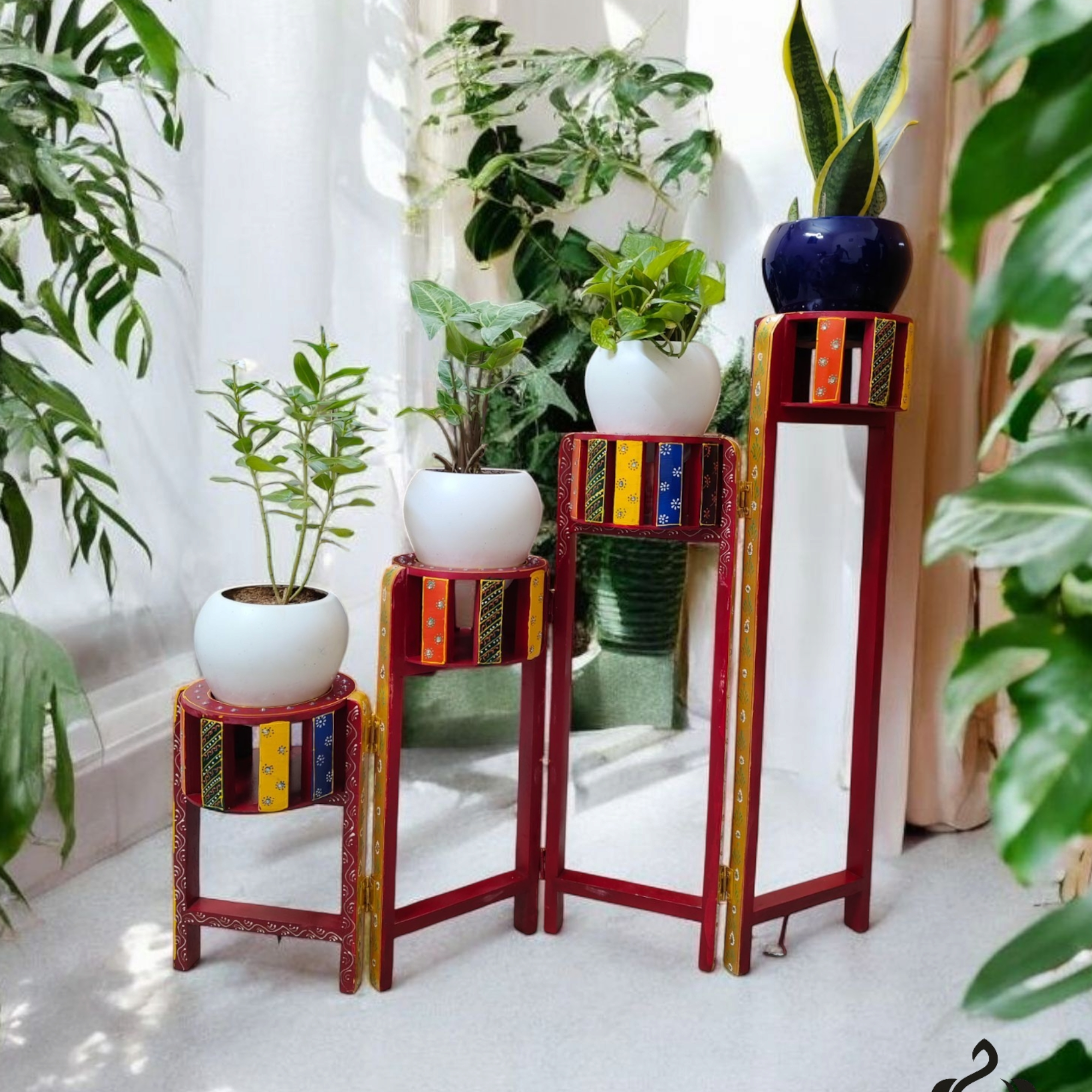 Brighten up your home or garden with the Tan Turtle Foldable Wooden Pot Holder Stand—a vibrant, hand-painted piece designed to display your favorite planters in a creative, space-saving way. This tiered stand features four pot holders arranged in an elegant step design, making it perfect for showcasing a variety of plants at different heights.