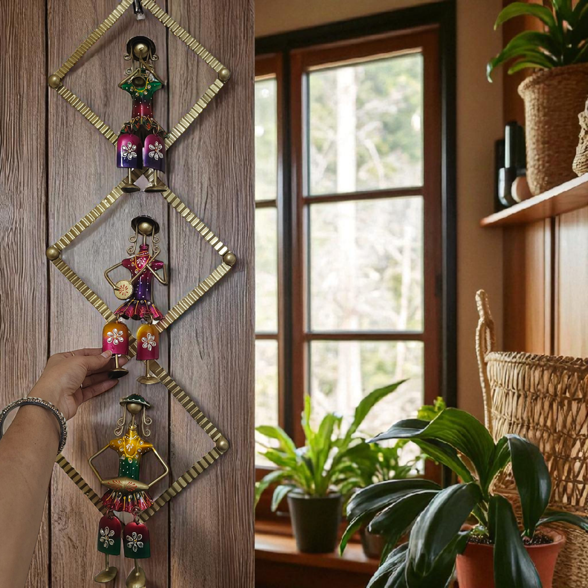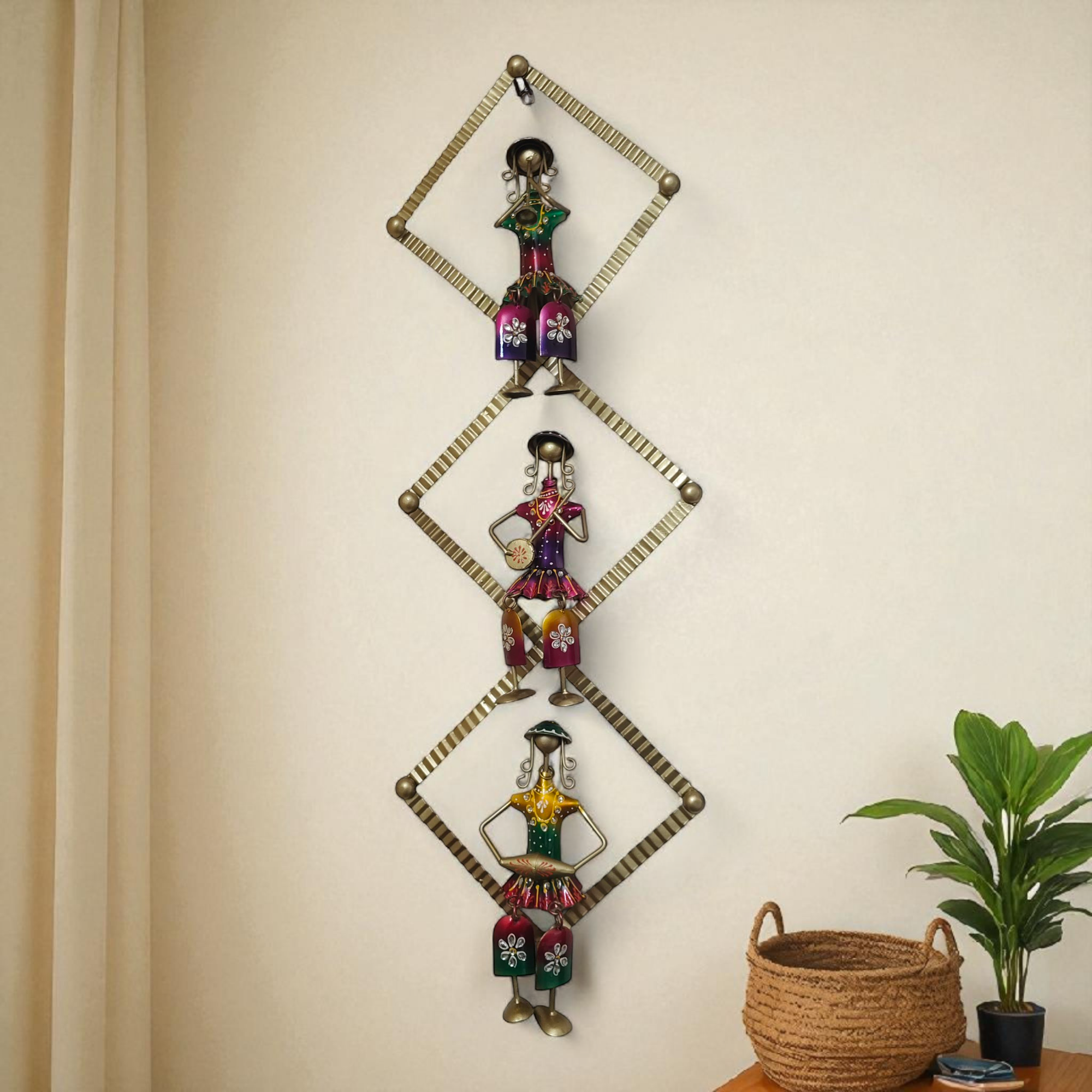 Celebrate tradition and artistry with the Tan Turtle Handcrafted Iron Tribal Musician Wall Hanging. Expertly crafted from durable iron, this wall art showcases three tribal musician figures, each hand-painted in vibrant colors with intricate detailing. Inspired by folk culture, it symbolizes joy, rhythm, and the spirit of community.