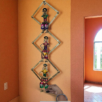 Measuring 81 x 27 cm, this wall hanging is a striking décor piece that fits perfectly in living rooms, bedrooms, hallways, or as an accent in your entryway. The geometric diamond-shaped frames enhance its design, while the colorful tribal figures add a touch of cultural richness to your walls.