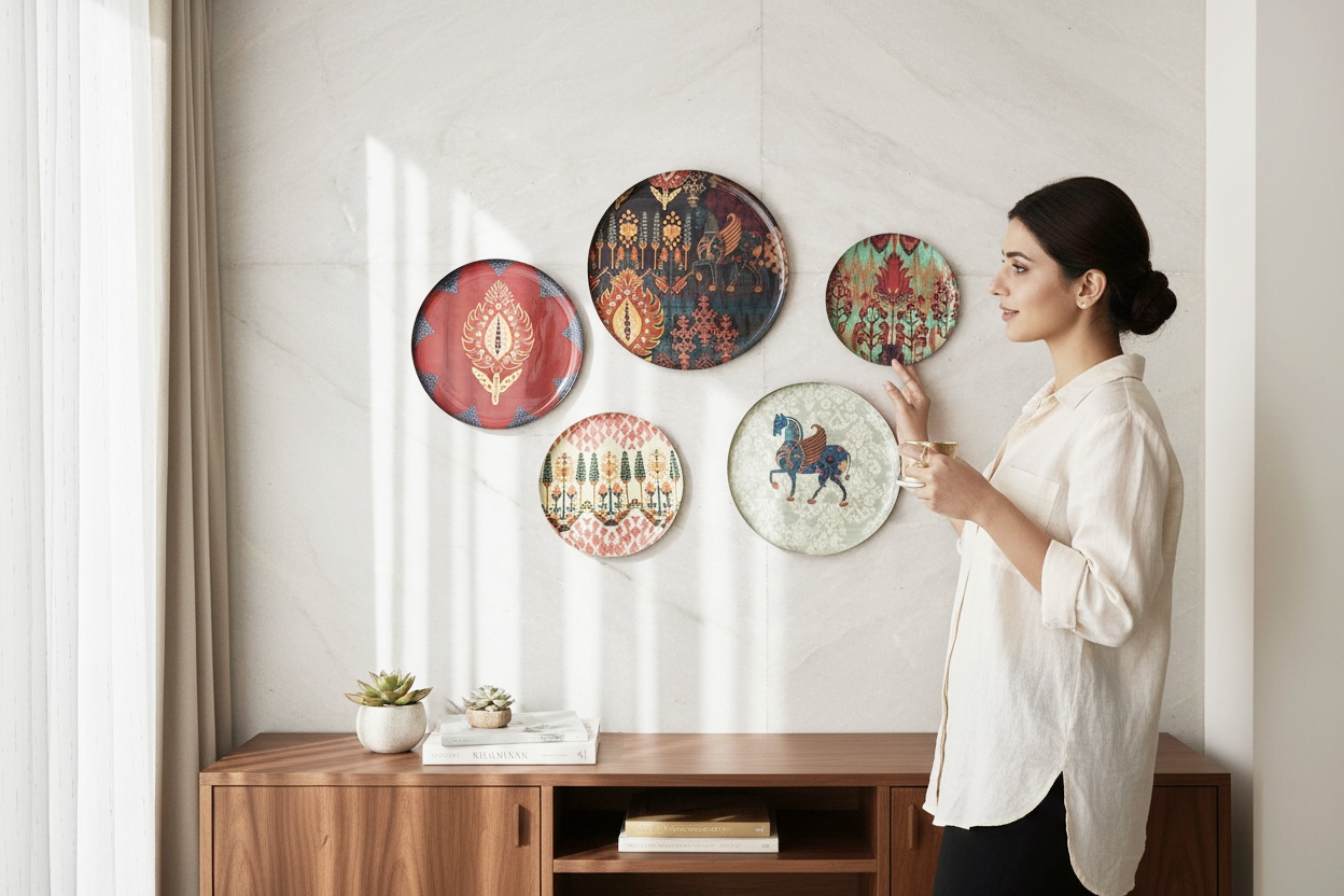- Set of 5 Decorative Metal Plates – Coordinated tribal & ethnic designs