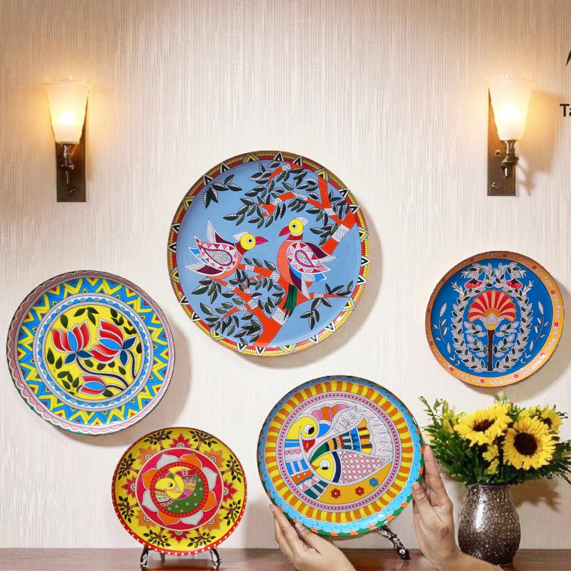 Add a splash of tradition and color to your home with Tan Turtle’s Madhubani Melody Wall Décor. This vibrant set of 5 enamel-painted cast iron plates showcases lively folk art motifs inspired by the famous Madhubani painting style of India.